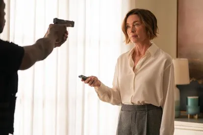 剧中极富“虎胆龙威”风格的动作场面(这是莫奈里尔的最爱之一),第六集的闪回中,我们认识了由Enuka Okuma饰演的Terri。从首集开始,Terri就通过柯林斯的悲伤和回忆逐渐浮现,例如当时给未出生的儿子读《巨桃历险记》。而在《你要求奇迹》中,她的出现瞬间点燃了剧情化学反应。莫奈里尔认为,这得益于主演布朗(Brown)和奥库玛(Okuma)的出啬演技,以及每一秒钟都在塑造“柯林斯家庭”的细节。